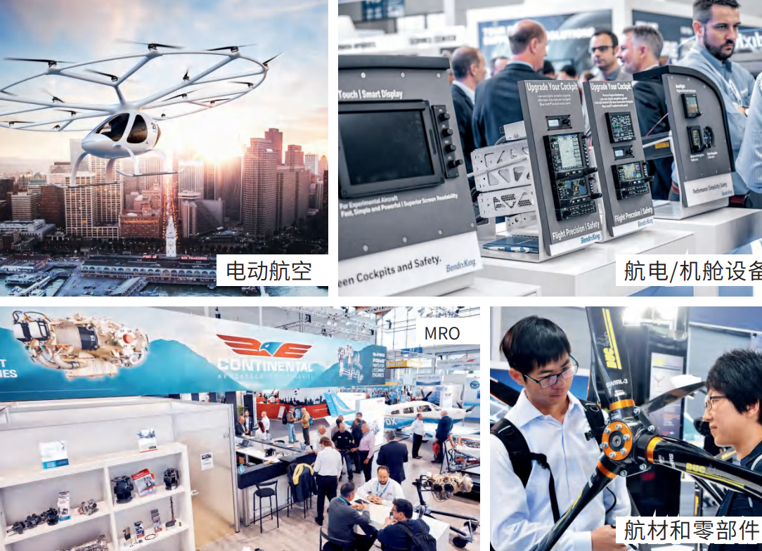 展品范围涉及通用航空及无人机上下游全产业链,涵盖包括:活塞式飞机、涡轮螺旋桨飞机和公务喷气机;直升机、陀螺仪和无人机;以及全系列航空电子设备、零部件、服务和系统的相关产品。