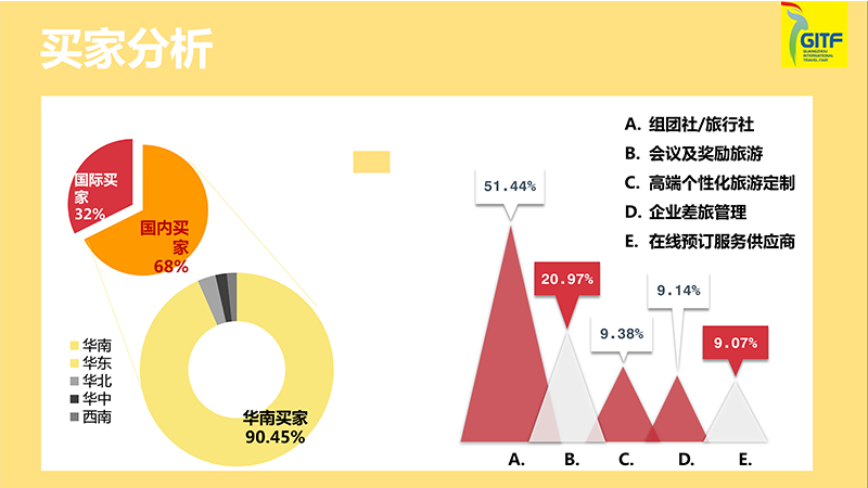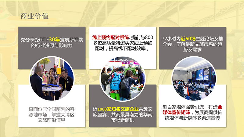 广州国际旅游展览会(GITF)作为国内创办历史最早、举办时间最长的大型国际旅游展。自1993年创办以来,已成为海内外旅游同业广泛关注,且涵盖出境旅游、入境旅游、会奖旅游等方面国际性专业展览会。