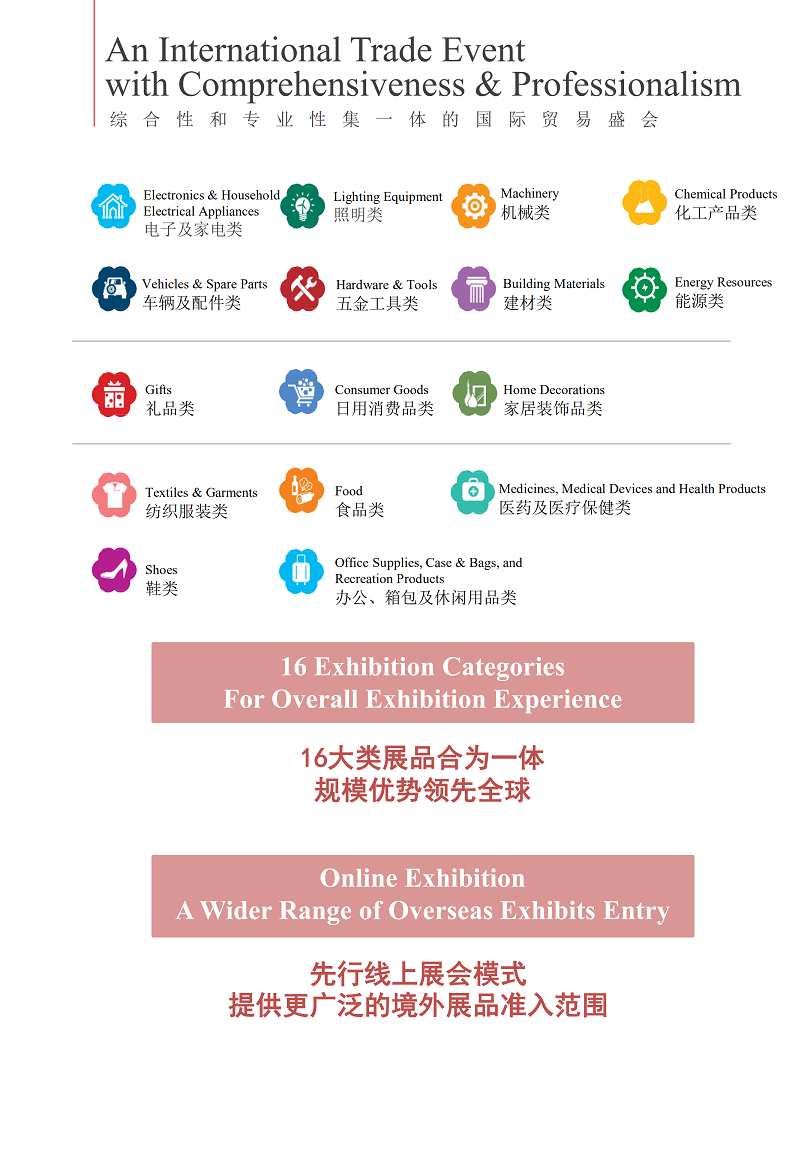 厨具、日用陶瓷、工艺陶瓷、家居装饰品、玻璃工艺品、家具、编藤铁工艺品、园林产品、铁石制品(户外)、家居用品、个人护理用品、卫浴用品、钟表眼镜、玩具、礼品赠品、节日用品、土特产