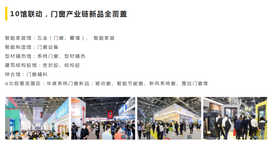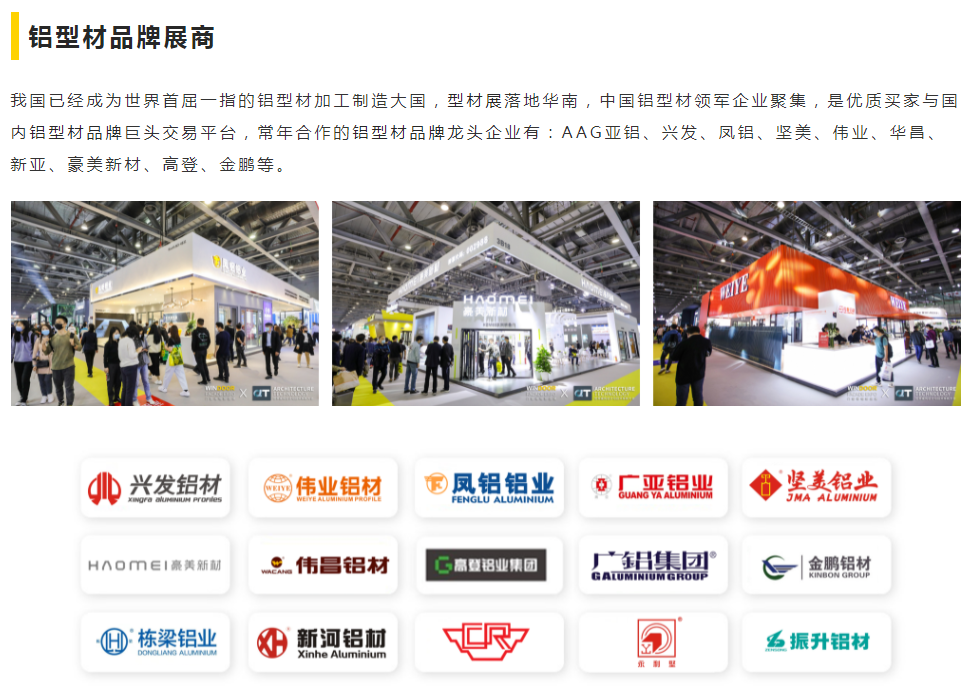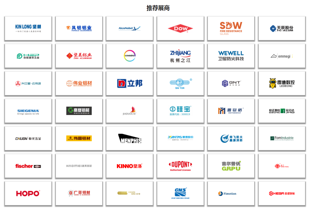 广州国际铝门窗幕墙新产品展览会(WINDOOR FACADE EXPO)是中国的终极行业盛会,将建筑师、建筑商、承包商、制造商、房地产开发商和贸易商等如期而至,共同探索行业发展方向。聚集了以兴发铝业、汉狮建材、希洛幕墙、陶氏、坚朗五金、慧鱼、成都硅宝、白云化工、泰诺风集团、阿克苏诺贝尔、广亚铝材、高登铝业等为代表的知名企业在此发布新品。