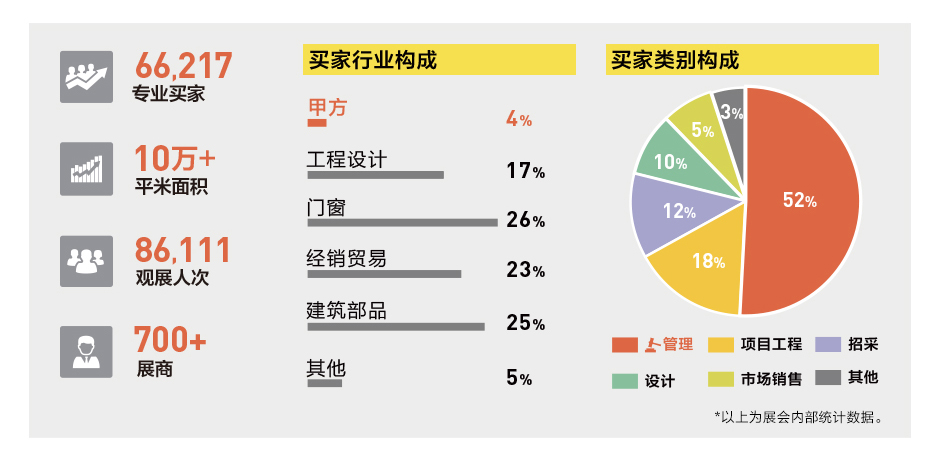 广州国际铝门窗幕墙新产品展览会(WINDOOR FACADE EXPO)由中国建筑金属结构协会铝门窗幕墙委员会主办。专注于发布门窗幕墙行业新产品、技术、解决方案,推动行业转型升级。年度牵头行业幕墙门窗工程等上下游品牌龙头企业总裁,汇聚羊城,共商行业发展策略。来自全球的700多家领先企业参展,展出规模达100000平方米。是目前亚洲最专业的门窗幕墙采购平台,值得信赖。