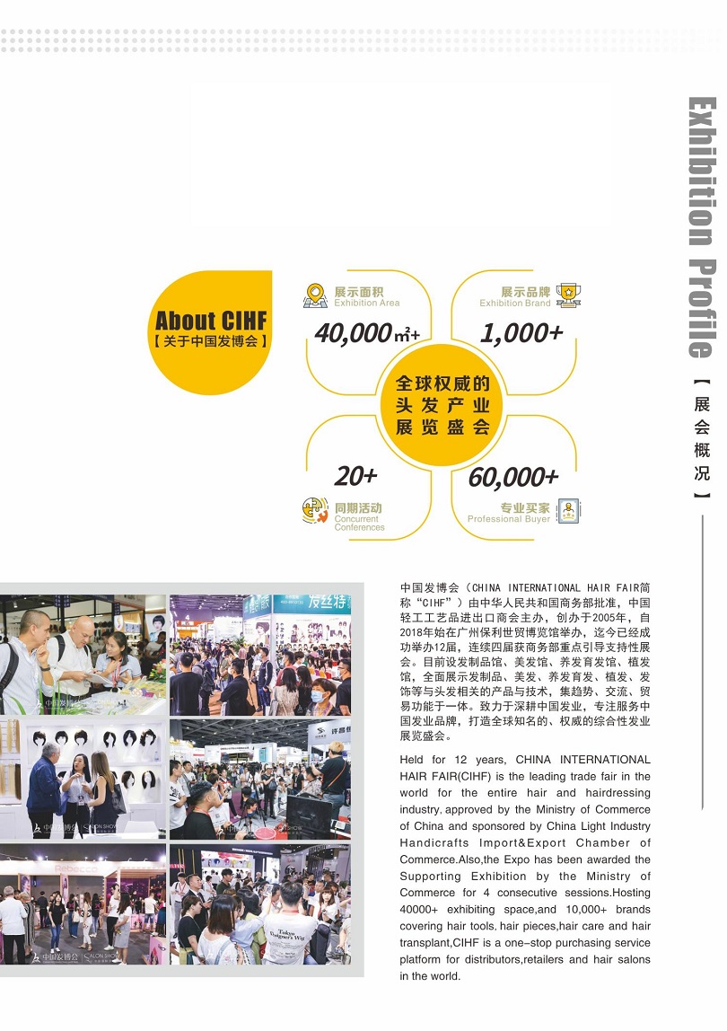 广州国际美发用品展-中国发博会(CIHF)专注服务中国发业,全面展示发妆(假发)、美发用品、养发育发、植发等与头发相关的产品与技术,集趋势、交流、贸易功能于一体。