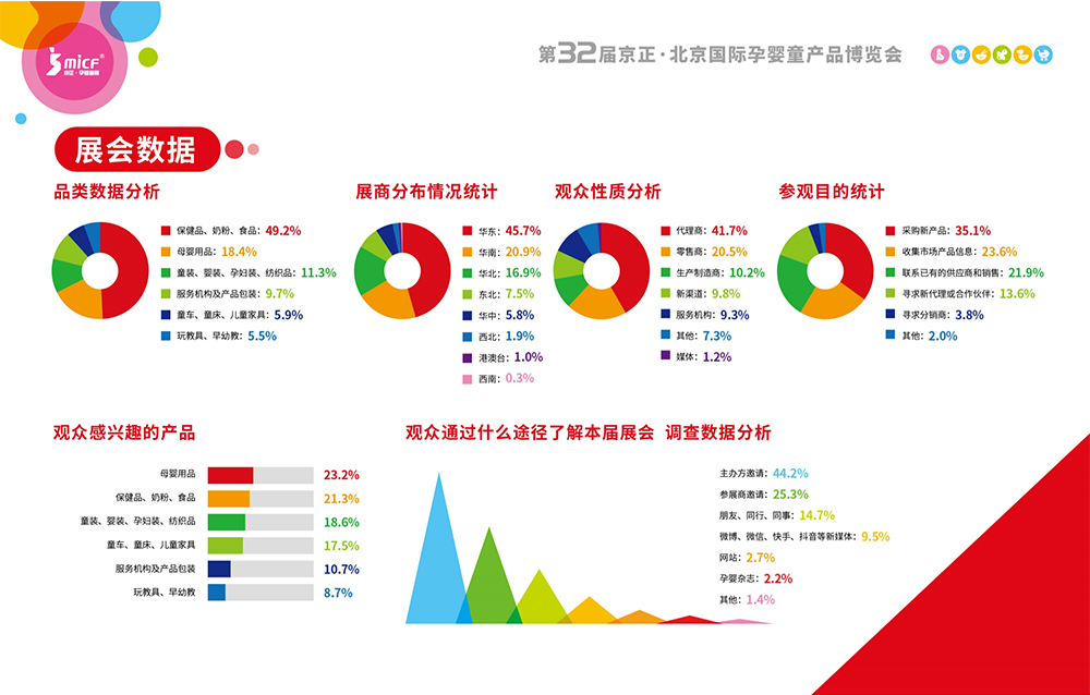 北京京正孕婴童产品展览会(MICF)从2003年创展以来,现成为中国地区孕婴童行业极具影响力的大规模行业盛会。它涵盖了全球范围的孕婴童全系列产品和最新技术,是孕婴童品牌推广、市场开拓、行业趋势指南及孕婴童商务贸易的专业化平台,更是孕婴童行业精英同仁每年必聚的交流盛会。