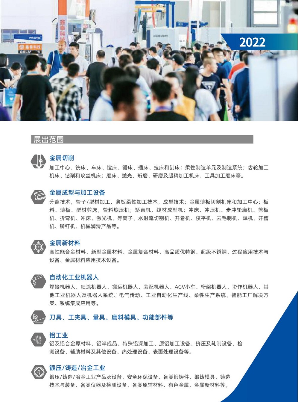 金属成形:数控转塔冲床、剪板机、折弯机、电加工及激光加工(切割、焊接、雕刻打标)等特种加工机床、高速精密冲床、压力机、锻造设备和锻件及周边机械
