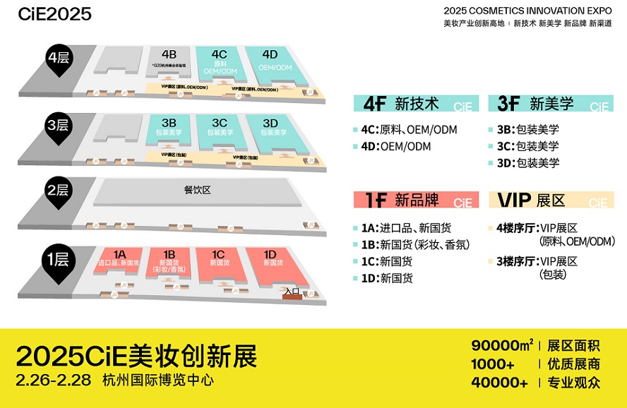 杭州美妆创新展(CIE)是中国首个聚焦“创新资源”的美妆。展会以“新技术、新品牌、新渠道”为定位,以“美妆产业新中心”杭州为起点,打造美妆产业创新高地。总展览面积达9万平方米,超1000家参展商,展品涵盖创新原料、包装美学、新国货、进出口、红人资源等全产业链资源,预计吸引40000+专业观众现场逛展。