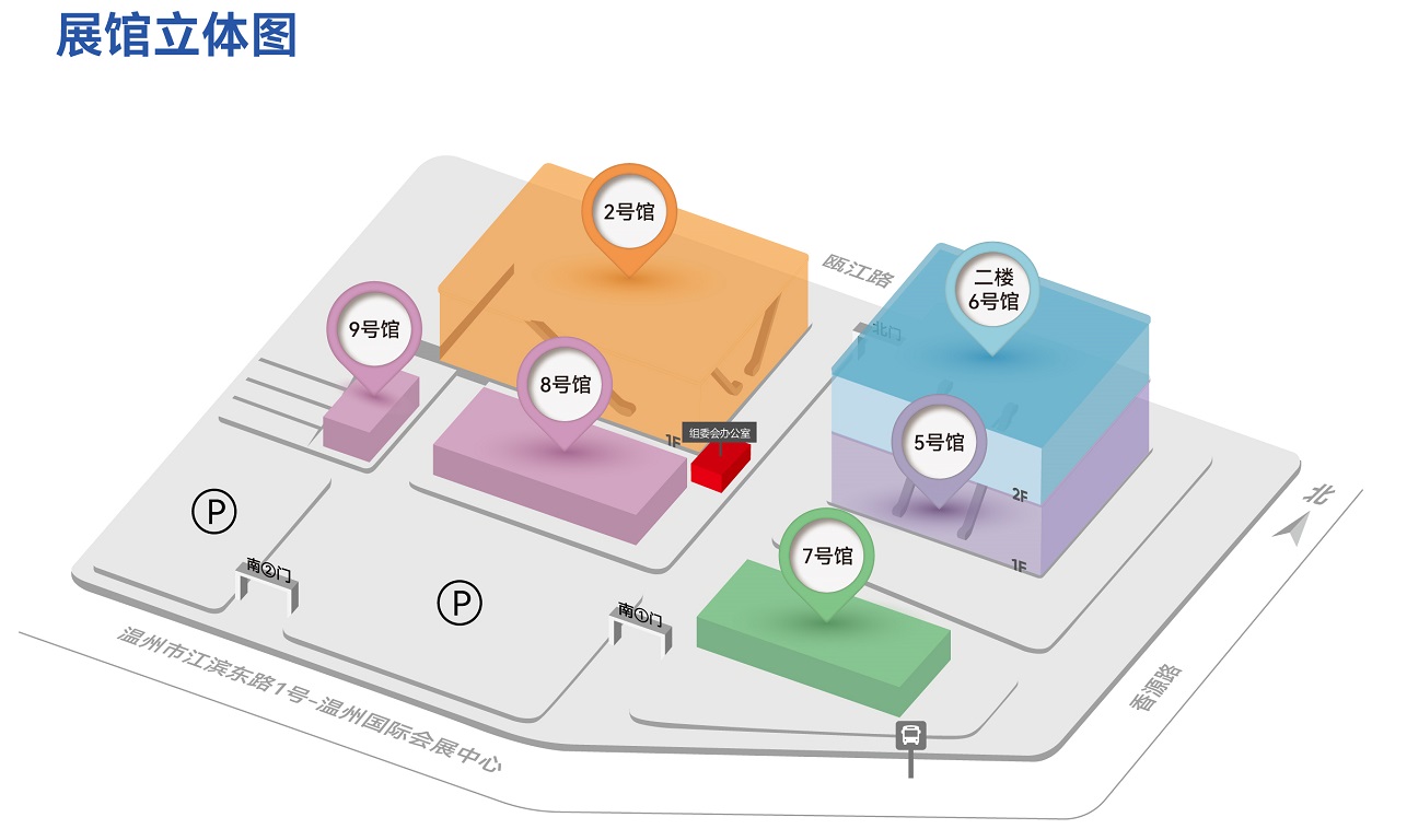 温州国际会议展览中心是温州十大标志性建筑之一,位于江滨东路与汤家桥交叉口北侧,北靠瓯江,直面规划中的杨府山商务中心区。温州国际会展中心由温州国际会议展览中心有限公司负责经营管理,主营承办、自办、合作举办展览,承办会议,展览服务、广告搭建等业务,是温州目前规模大、功能全、档次高的集会议、展览、商贸、酒店、体育、娱乐等多功能为一体的大型智能化展馆。