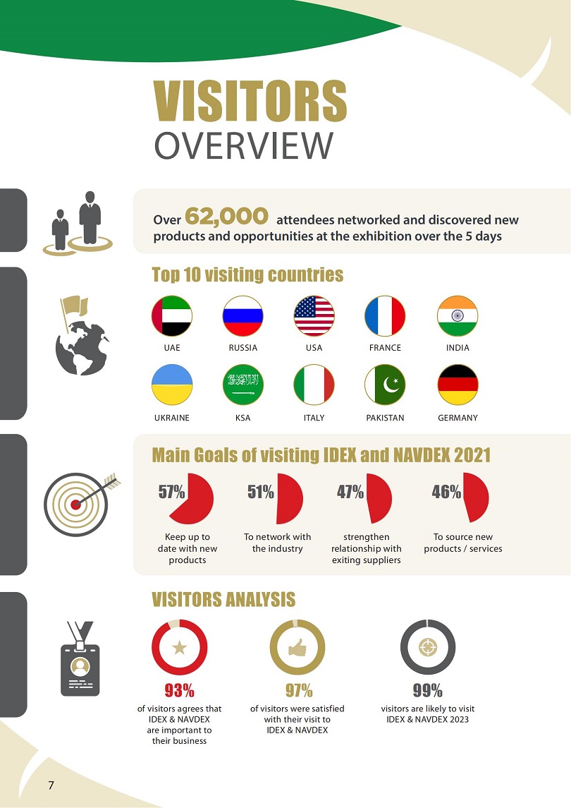 作为国防领域的世界领先活动,IDEX将提供与全球领导人、政策制定者和决策者的广泛网络的联系,并有机会接触到数千家主要承包商、原始设备制造商和国际代表团。IDEX将包括国际防务会议(IDC)、IDEX和NAVDEX启动区、高级别圆桌讨论会、创新之路和IDEX会谈。IDEX和NAVDEX是全球国防和安全界的重要枢纽。