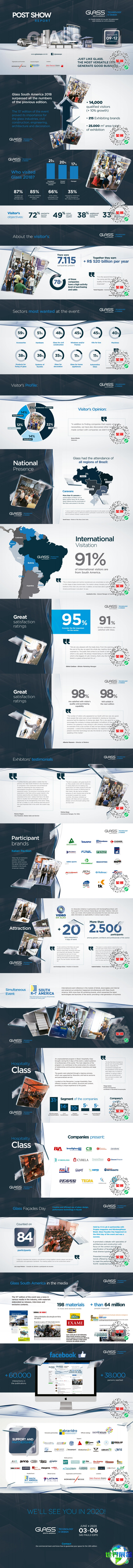 上一届巴西圣保罗玻璃工业展Glass South America的展览总面积达20000平方米,吸引了来自中国大陆、中国台湾、德国、意大利、墨西哥、新加坡、迪拜、马来西亚等地的398家企业参展,参观者人数达到18500名。