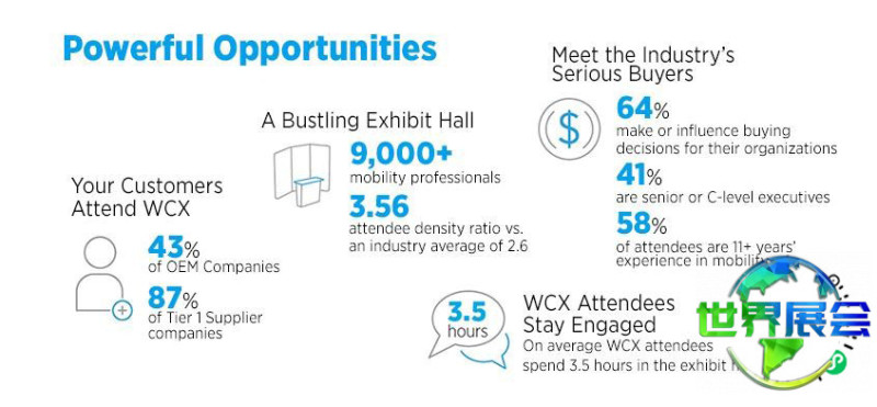 美国底特律汽车软件设计工程供应链展览会(WCX)由美国汽车工程师学会主办,是当今全球汽车领域最具影响力的权威活动之一,亦是规模最大的汽车专家年度聚会;同时也是世界各国顶尖汽车制造商及零部件供应商进行年度交流的重要场合。