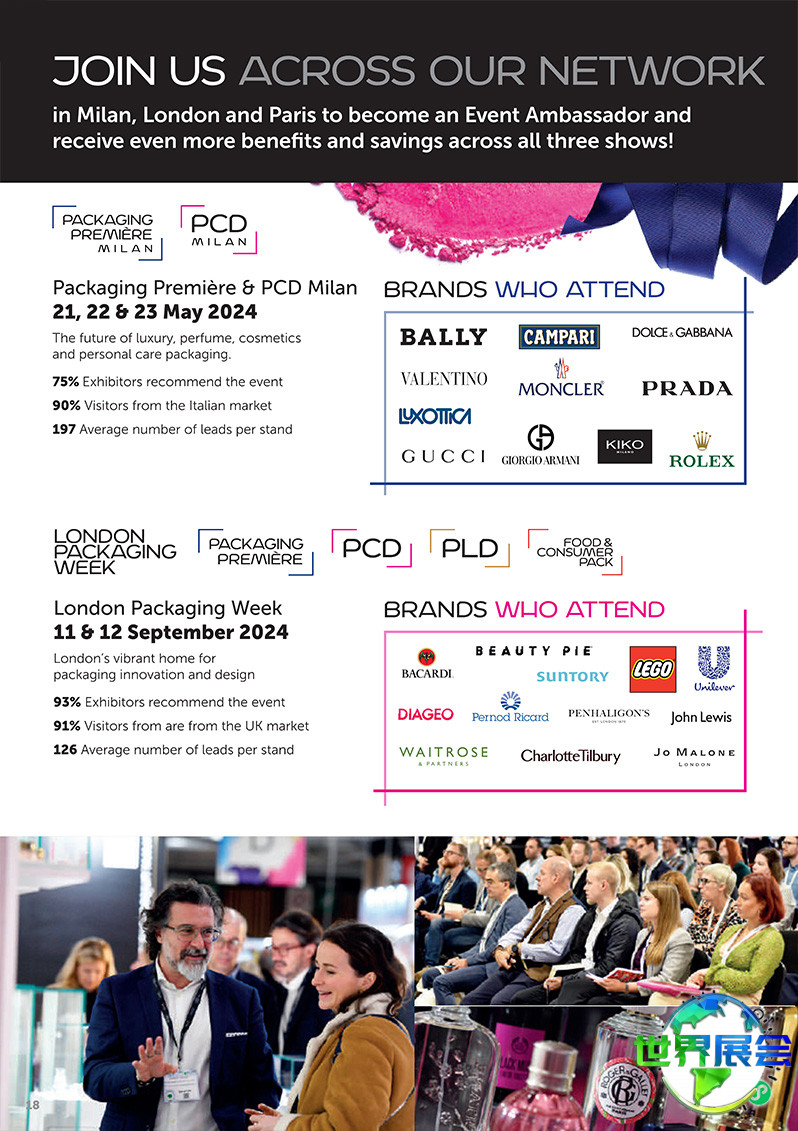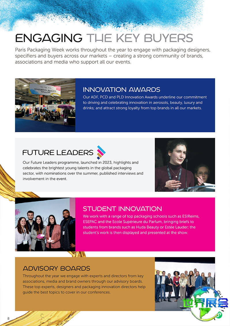 法国巴黎化妆品、香水包装及奢侈品包装展览会(Paris Packaging Week)将全球顶级的美容、奢侈品及快消品集团与包装供应商、材料及创意灵感相链接,这些元素将塑造其品牌未来。通过其高规格的议程安排与社交活动,在作为全球美容奢侈品行业中心的巴黎,共同庆贺并分享最尖端的创新与设计理念。
