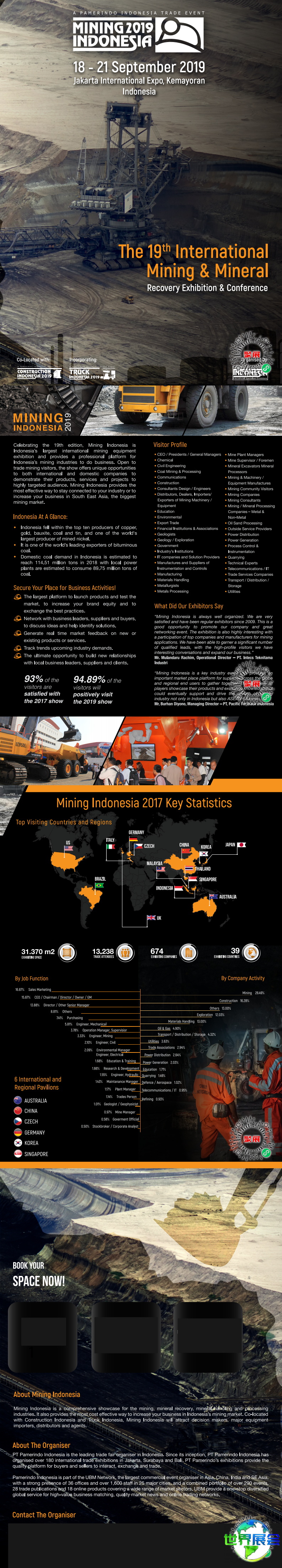 中欧世界展会网是一家提供全球展会门票采购、展位申请、设计搭建等一站式服务的平台,专业为您办理印尼矿业展展位预定事宜。