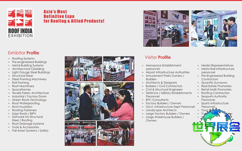 印度屋面及防水建筑材料展(ROOF INDIA)是印度境内规模最大的屋面材料专业展会。该展会每年举办一届,在印度不同城市巡回举行,集中呈现屋面材料与技术领域的最新成果、增值服务及创新理念。