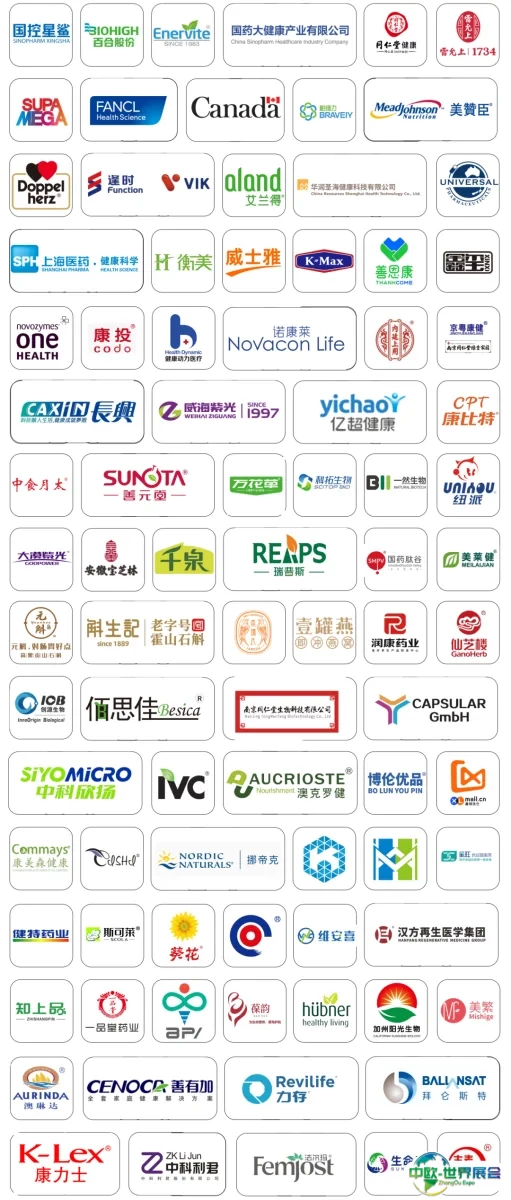 健康产业巨头齐聚一堂:国药大健康、华润圣海、紫光、柏维力、百消丹集团、长兴生物、善元堂、新西兰美大、上药健康、k-max、逢时集团、森下仁丹、Doppelherz、同仁堂健康、威士雅、一然生物、科拓生物、澳乐维他、上海药神蜂生物、江苏护佑健康、新西兰环球制药、Fancl、瑞普斯、健莱乐、澳乐乳、诺维信、Noromega、纽派、TMR、北京同仁堂、人福医药、华海药业、新华制药、红日药业、瑞阳制药、悦康药业、振东健康、超亚医药、齐鲁制药、华联药机等在内的优秀企业将悉数亮相。