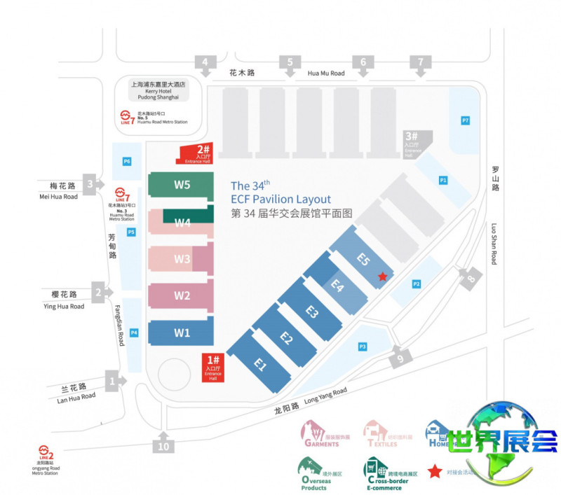 2)乘坐2号线至龙阳路站,步行约10分钟至1号入口大厅进场(靠近E1馆)。