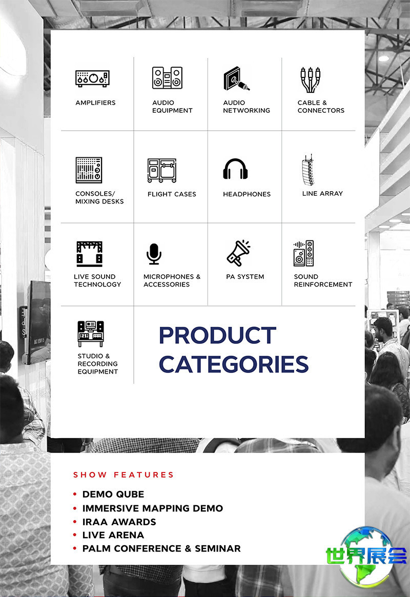 印度孟买专业灯光音响、系统集成及广播电视博览会(Palmexpo)是印度及南亚地区在乐器与舞台灯光领域最具权威性的行业盛会之一,也是印度现场娱乐产业的关键活动,现场将呈现超过1000种融合了前沿商业科技的产品。
