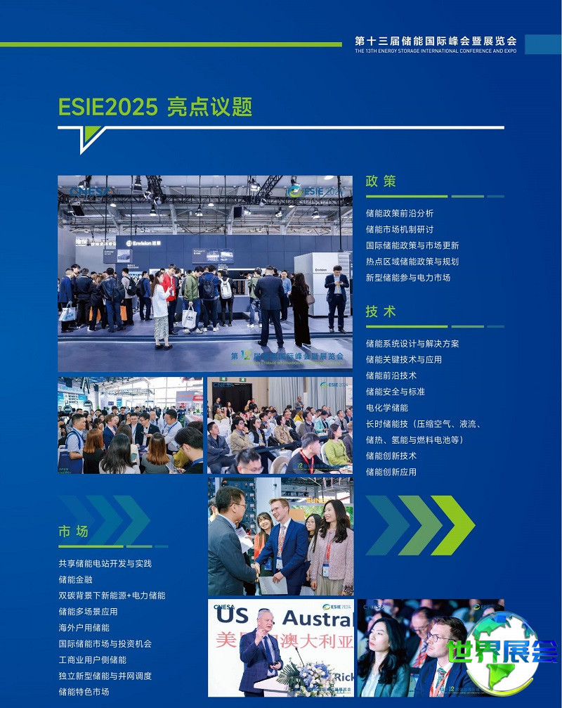 北京国际储能展览会-北京储能峰会(ESIE)凭借其专业视野和强大影响力,已成为全球公认的顶级储能品牌展会,其每年的开幕报告、高峰对话以及分论坛议题均会成为行业讨论的焦点。