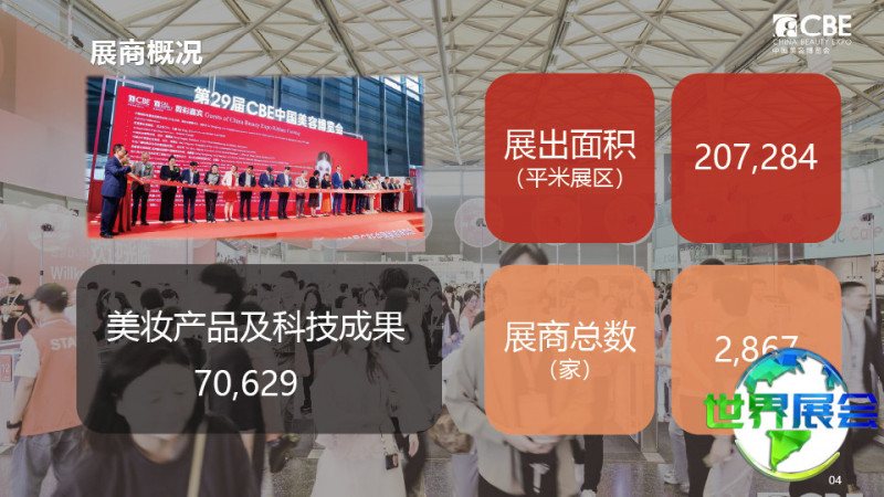 化妆品品牌展区:护肤品、彩妆、香水香氛、面膜、个人护理用品、男士护理、洗护发产品、家用美容仪、家庭清洁用品、口服美容品、美妆工具、连锁加盟