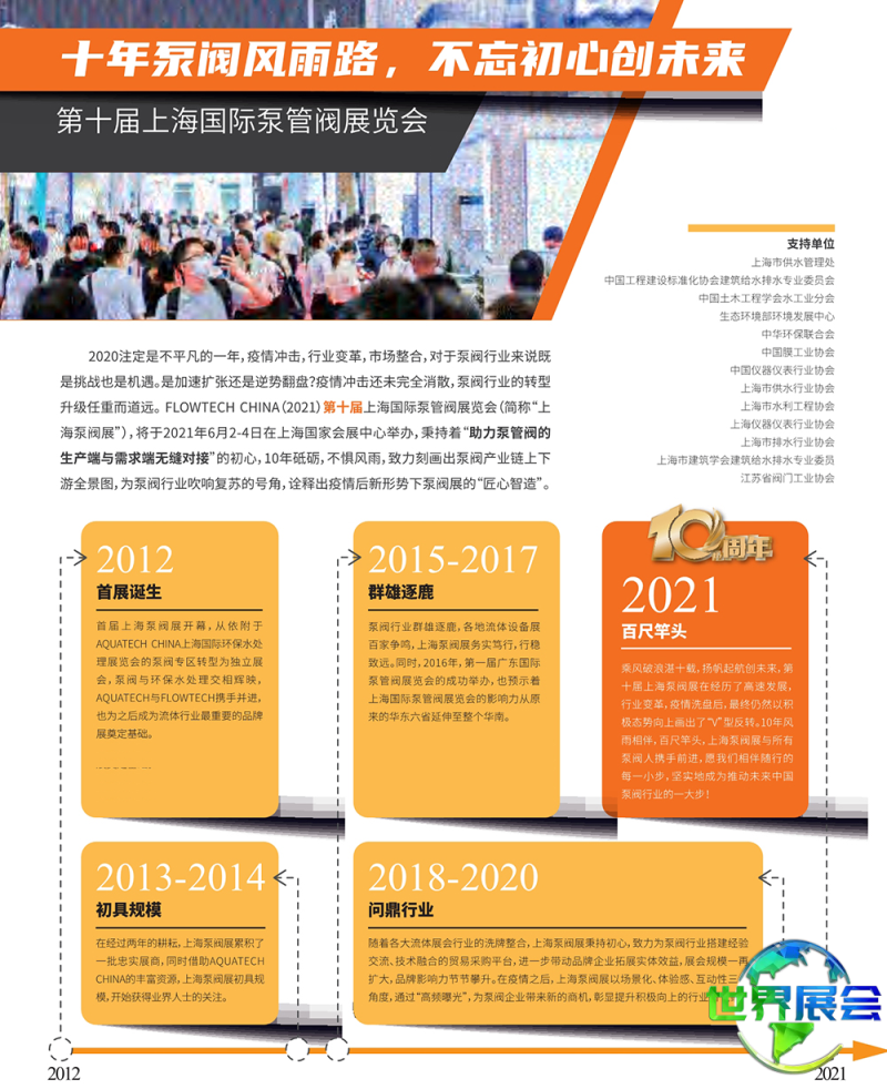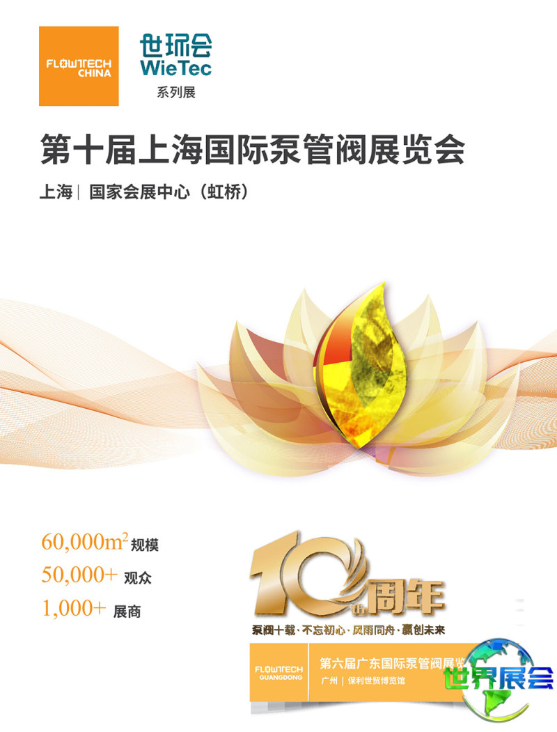 上海国际泵阀展览会(FLOWTECH CHINA)在上届展会中,展示面积达70000平方米,吸引了1200家企业参展,接待观众60000人次。展会同期联动举办世环会系列展览,多展齐发,全面展现环保产业全链条的发展动态与创新实践。