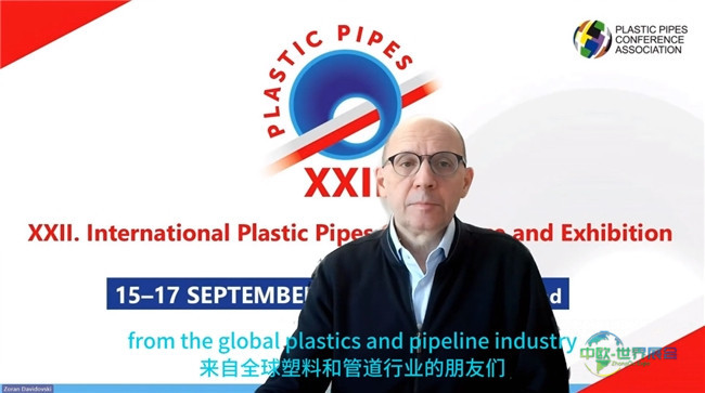 国际塑料管道会议协会主席 Zoran Davidovski 通过视频连线介绍了国际塑料管道交流会的相关情况,并对中国塑料管道行业的国际合作前景给予了积极评价与展望。