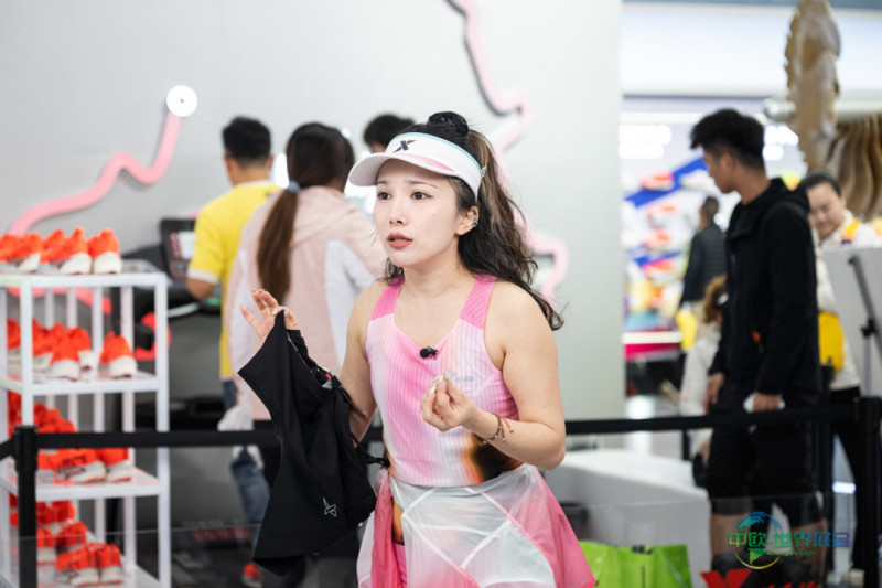 3月19日,主播在武汉马拉松体育消费博览会展位前进行直播销售。(湖北日报全媒记者 任勇 摄)(湖北日报全媒记者 任勇 摄)