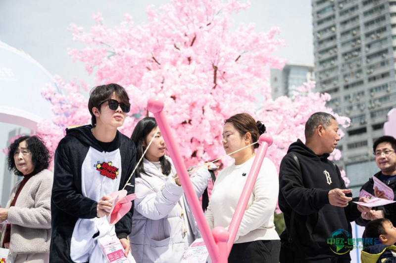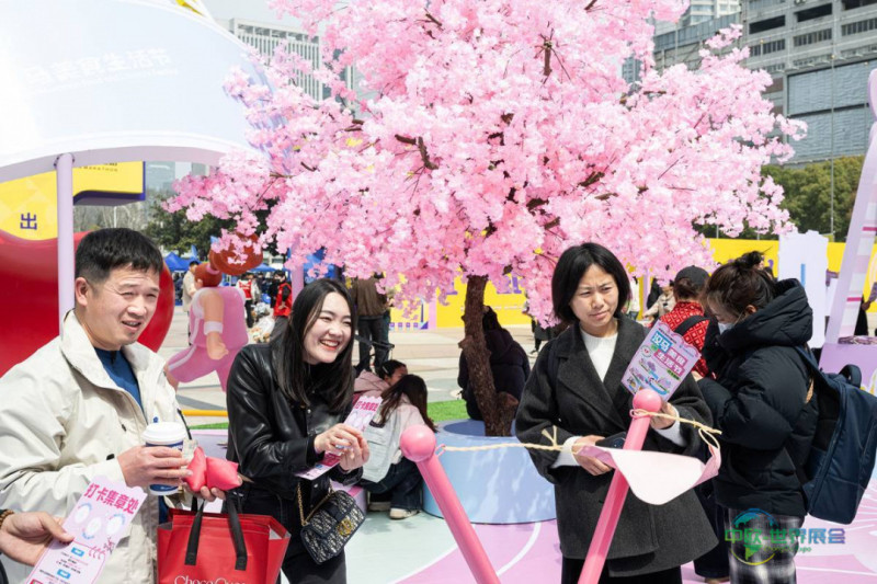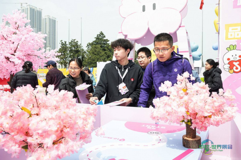 3月19日,观众在美食广场参与互动游戏。(湖北日报全媒记者 任勇 摄)
