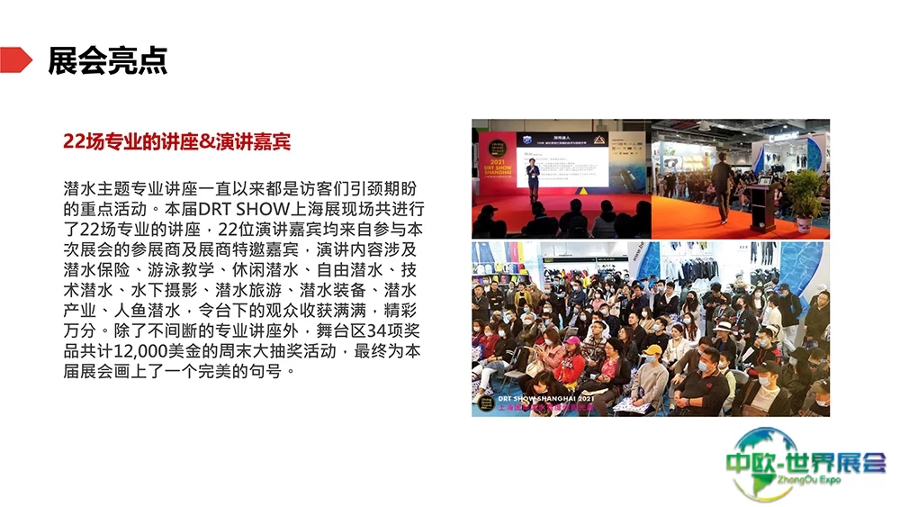 作为潜水界年度盛会!上海国际潜水及度假观光展(DRT SHOW)将率先为业界提供最新的市场趋势与动态,并带领更多人发现水下世界的美好。