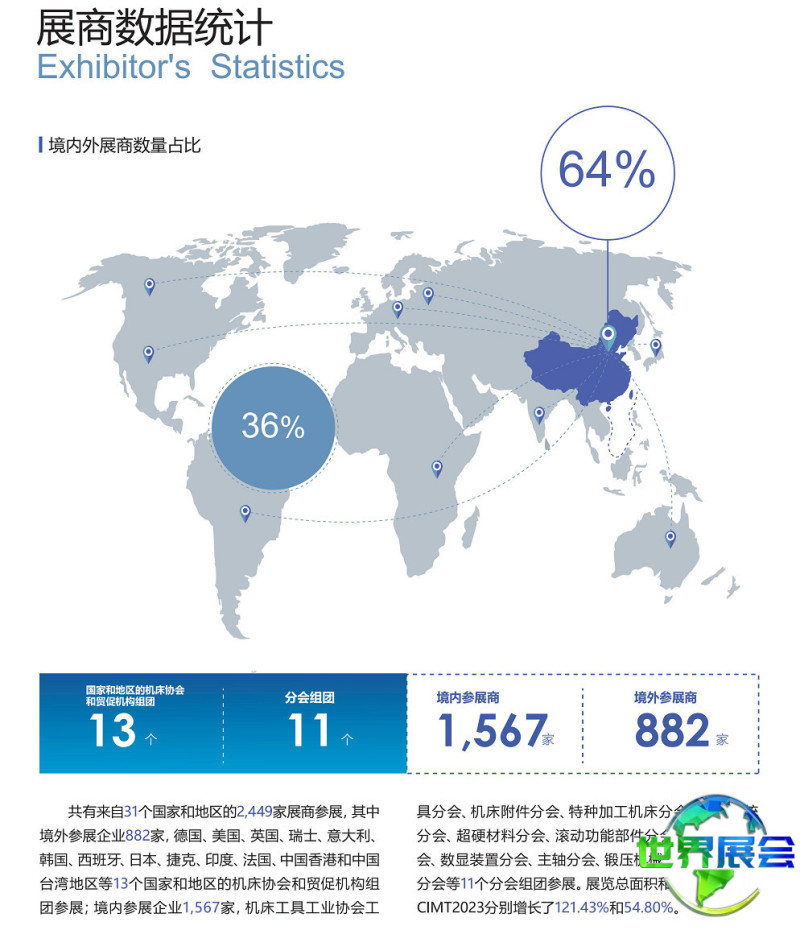 中国北京国际机床展览会(CIMT)是全球四大机床名展之一。该展会始于1989年,由中国机床工具工业协会主办,是中国最具影响力的国际机床工具盛会,与欧洲国际机床展(EMO)、美国芝加哥国际机床展(IMTS)和日本国际机床展(JIMTOF)并称为世界四大机床展览会。