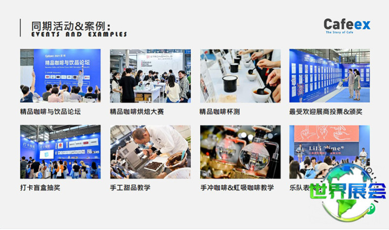 CAFEEX咖啡展由展览主体及系列配套活动构成。参观者不仅能在展会上接触更多咖啡品牌,还可通过论坛汲取专家心得,亲身体验咖啡品鉴,观看咖啡师大赛以及咖啡豆烘焙竞赛等项目。