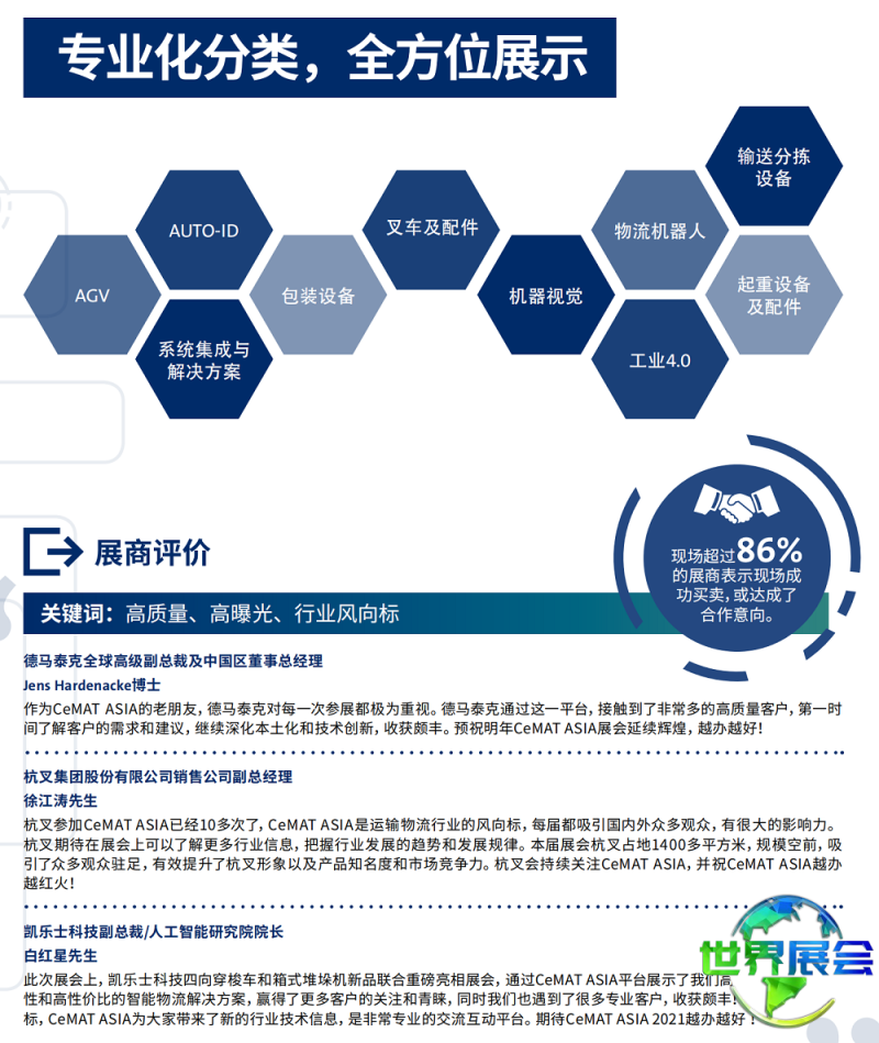 本平台所刊载的资讯来源于外部公开信息及合作方提供,由“中欧世界展会网”进行整理编辑,旨在为用户提供便捷的展会信息参考。我们致力于打造一个汇集全球展会时间与地点信息的服务平台,并可提供展位预订、参观协助、设计搭建等第三方服务对接。