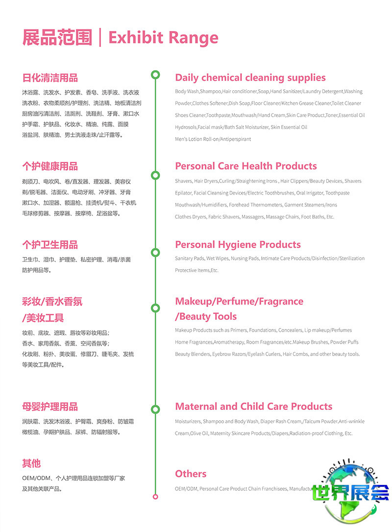上海国际个人护理及日用化妆品博览会展出品类: