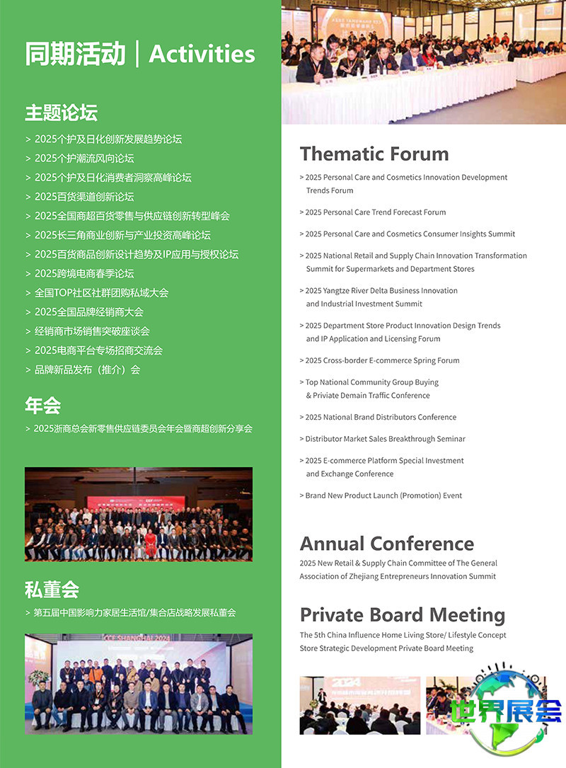 上海国际个人护理及日用化妆品博览会(IM)将与CCF上海国际日用百货(春季)博览会同期举办,共享客户资源。中国百货行业大会及十余场专题论坛等活动也将在展会期间举行,邀请行业专家与领军人物,围绕热门议题展开讨论,通过经验分享与思想碰撞,协助从业者洞察未来市场走向。