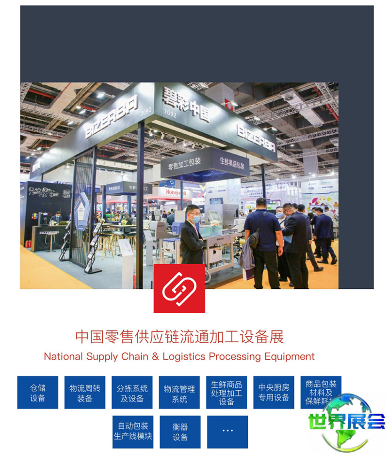 智慧物流及供应链信息化展区:识别设备、物流装备、托盘、仓储笼车、周转箱、仓储设备、分拣系统、包装机械、包装材料、编码系统、物流信息系统、供应链管理系统等