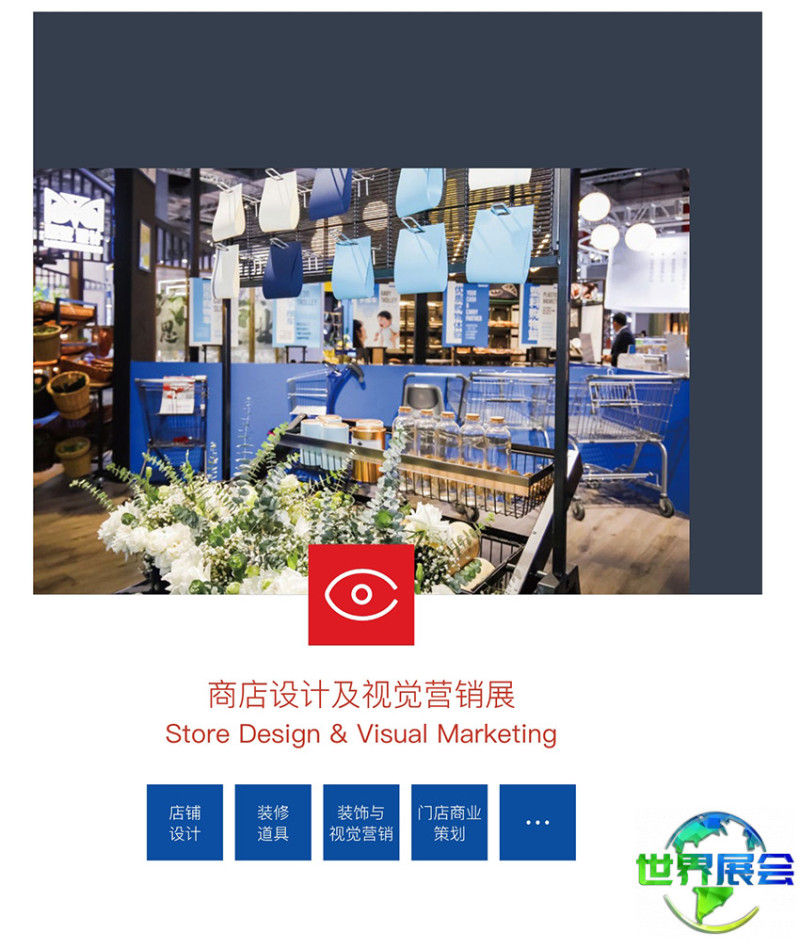 店铺设计与视觉营销展区:门店设计、装修材料与道具、装饰与视觉营销方案、店铺商业策划服务等