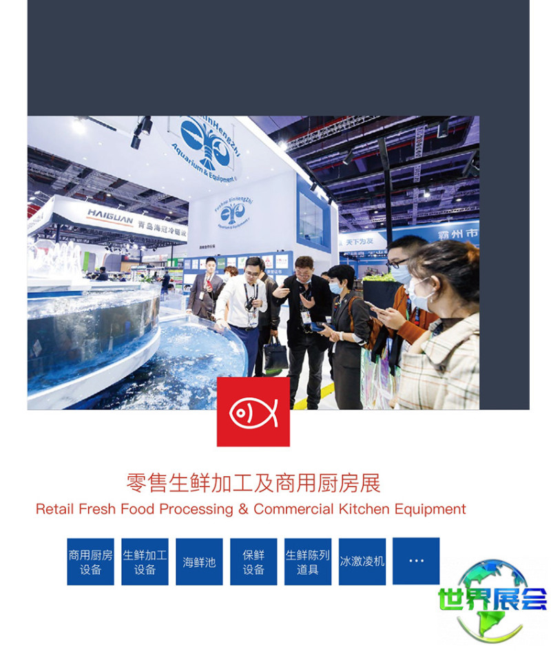 零售生鲜加工及商用厨房设备展区:商用厨具、生鲜处理设备、保鲜技术设备、生鲜展示器具、冰淇淋机等
