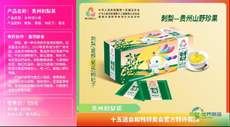 2025年,千优谷联合研制的“贵州刺梨茶”成功入选全国十五运会官方特许商品,并在广东,香港多场合展现,反响热烈。作为东西部协作的农业品牌,千优谷凭借领先的深加工技术,将贵州深山刺梨与食养文化融合,并借助全运会的高势能平台,让贵州风物以“官方指定”的身份走向全国。此次跨界合作,彰显了千优谷在产品研发与品控上的卓越实力,更通过体育盛事的窗口,将刺梨从“山野珍果”打造为“食养伴侣”,实现“贵品出山”的品牌价值跃升,成为粤黔产业协作、消费帮扶的生动注脚。