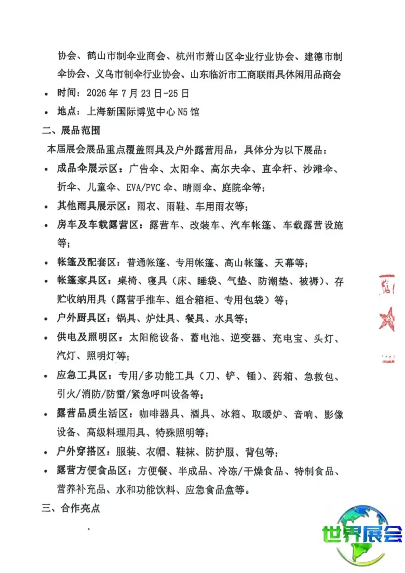 2026中国制伞产业及户外露营装备用品博览会