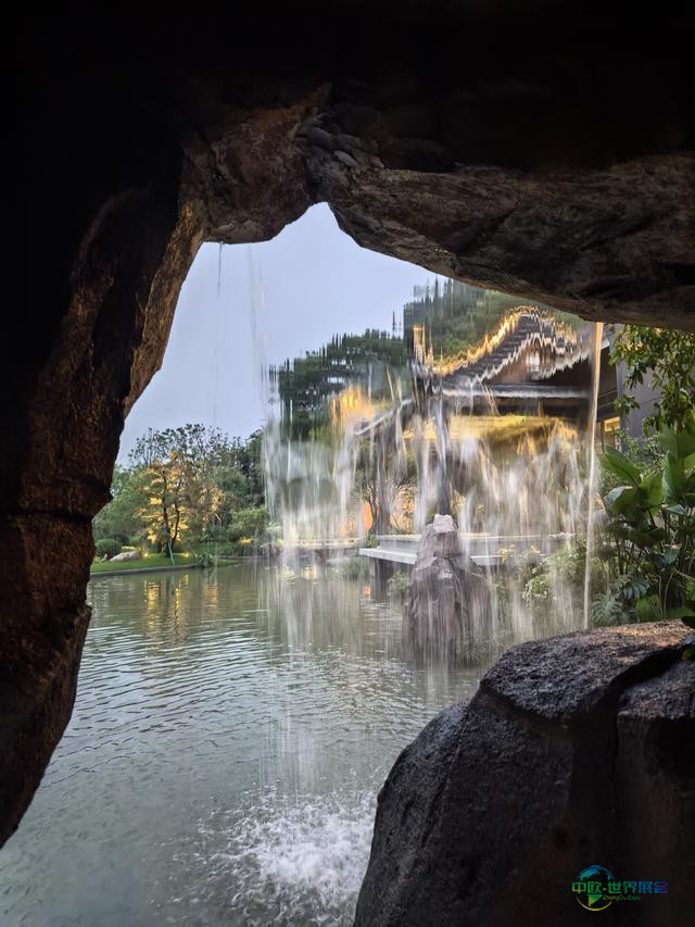 园区最内部的“孤兀禺山”以7米高的仿黄石假山叠水造瀑,岩洞内设有“八音悬凉”装置,流水声效与寄畅园八音洞有异曲同工之妙,既复现了清代羊城八景之一,也展现了岭南园林“咫尺之内囊括天地”的营造技艺。