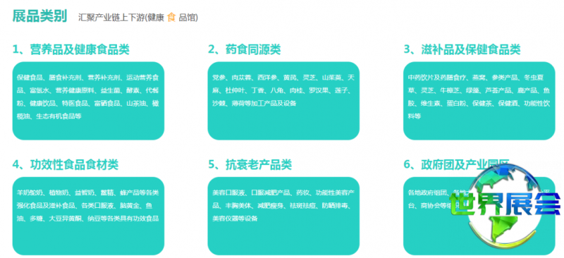 特色食品类:进口食品及饮料、各地政府及主宾省推介产品、国家有机示范县/区产品、扶贫有机产品、一带一路沿线进口食品等