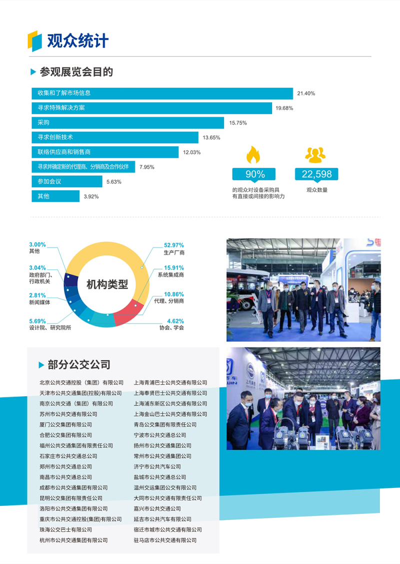 上海国际客车、公交车展览会(CIBE)参展企业涵盖了客车整车制造、电动客车、燃料电池客车、轻型客车、大型客车以及相关配套设备等领域,充分展示了中国客车产业的发展实力和活力,吸引了国内外专业观众25702人次。
