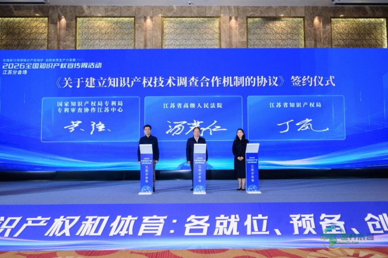 交汇点消息 4月22日,2026年全国知识产权宣传周江苏分会场活动于南京国际博览会议中心举办,江苏知识产权技术调查中心在会上揭牌亮相。该中心由江苏省知识产权局、江苏省司法厅以及国家知识产权局专利局专利审查协作江苏中心共同组建,目标是构建一个覆盖全面、全省共享的知识产权技术调查官人才储备库,优化技术事实查明体系,从而为知识产权的司法审判、行政执法及仲裁调解等工作提供专业的技术支持。