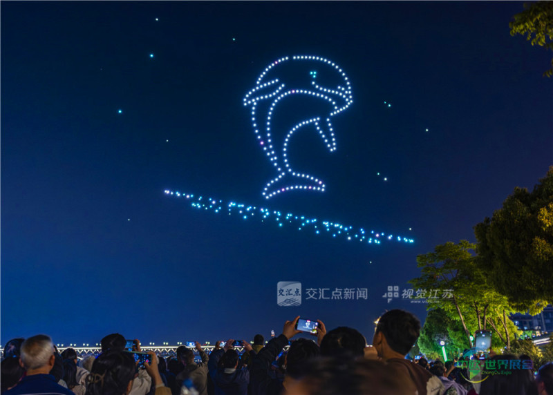 (特约摄影 崔飞 25日19:57摄9:37上线)4月25日晚,南京下关火车主题公园上空流光溢彩,数百架无人机腾空而起,献上一场科技与艺术交融的视觉盛宴,为春夜南京增添了一道靓丽风景线。