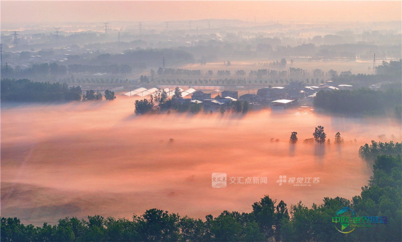 (特约摄影 李娇 6:03摄 9:42上线)4月26日,连云港市东海县房山镇柘塘村,田园、村庄与道路在晨雾中若隐若现,构成一幅静谧而生动的田园画卷。