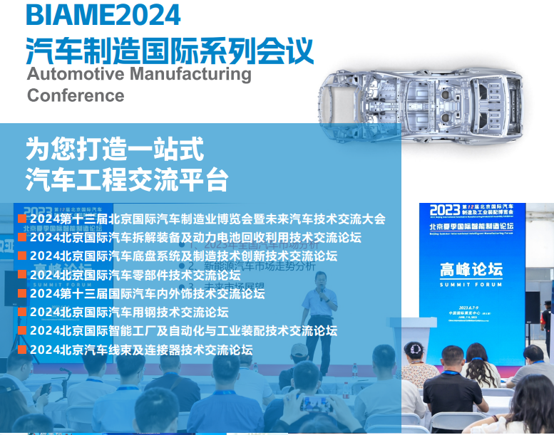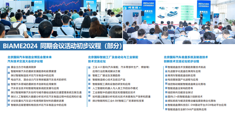 面对新形势、新机遇!北京国际汽车制造业博览会(BIAME)蓄势待发。行业大咖、行业精英汇聚一堂,高峰论坛、研讨会、产品发布会和对接会等重磅活动接踵而至。展会结合,交流发展热点,剖析发展痛点,探讨发展难点,共话行业前沿趋势。