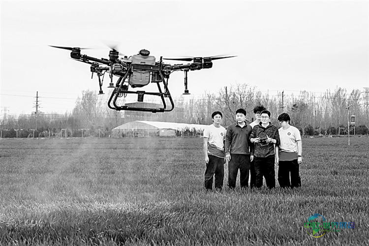 4月9日,山东轻工职业学院师生开展小麦飞防作业,推动专业能力与农业生产紧密融合。翟慎安摄/光明图片