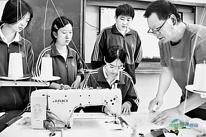 湖南省江永县职业中专教师指导学生进行服装裁剪实操练习。田如瑞摄/光明图片