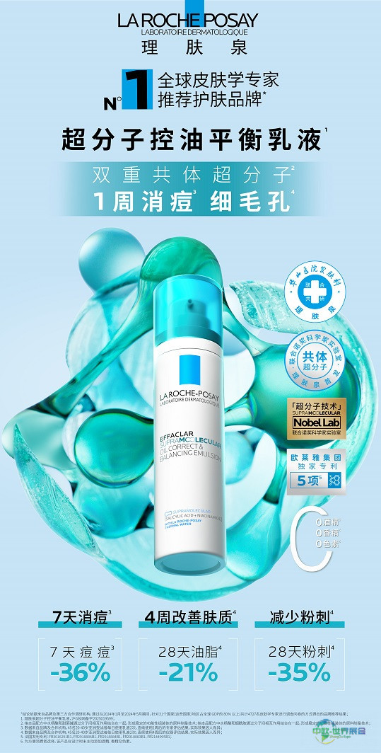 2025年4月27日,“大美泱泱,智敬未来”欧莱雅中国2025/2026年度发展战略沟通会顺利举行,汇聚行业力量,探寻美的时代答案。源自法国的皮肤学级科学护肤品牌理肤泉,重磅推出“华山医院 X 欧莱雅中国医研共创皮肤科学实验室”首个落地成果产品——超分子控油平衡水乳1。该系列首次应用双重共体超分子科技,突破了控油清痘产品可能刺激皮肤的限制,为油性皮肤人群带来温和控油、根源抑痘的护肤新选择。