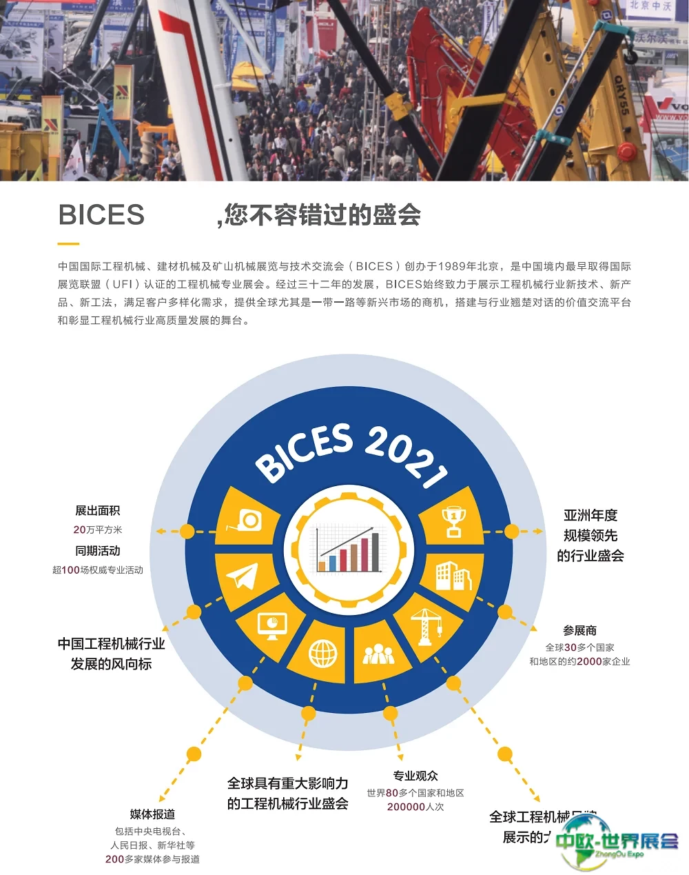 中国北京国际应急抢险救援装备展览会(BICES)同期举办北京国际工程机械、建材机械及矿山机械展览与技术交流会(BICES)及中国国际商用车博览会,交叉的市场结构,互补的观众群体,将不断为业界创造更多价值。展会同期将举办一系列的政策法规、技术交流等活动,宣传和交流应急救援知识;前瞻行业发展的最新趋势,追踪市场发展的热点,为企业与用户之间搭建最佳的价值平台。