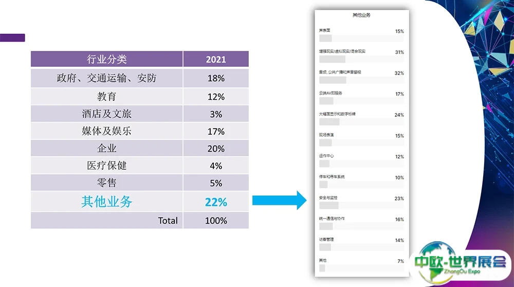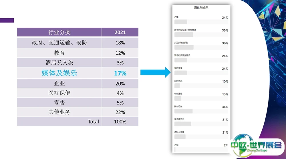 3D 技术、音频产品、功放及调音台、音频技术、视听技术、计算机、IT科技、指挥及控制系统、控制台、传送系统与技术、显示设备及技术、电子白板、黑板及电子定位系统、家用网络与自动化、家庭影院技术、多媒体、投影机镜头及附件、演讲及培训工具、信息发布及服务、支架及吊挂系统、信号管理及处理、模拟系统、流媒体及网络播出系统、视频制作及编辑技术、无线影音系统