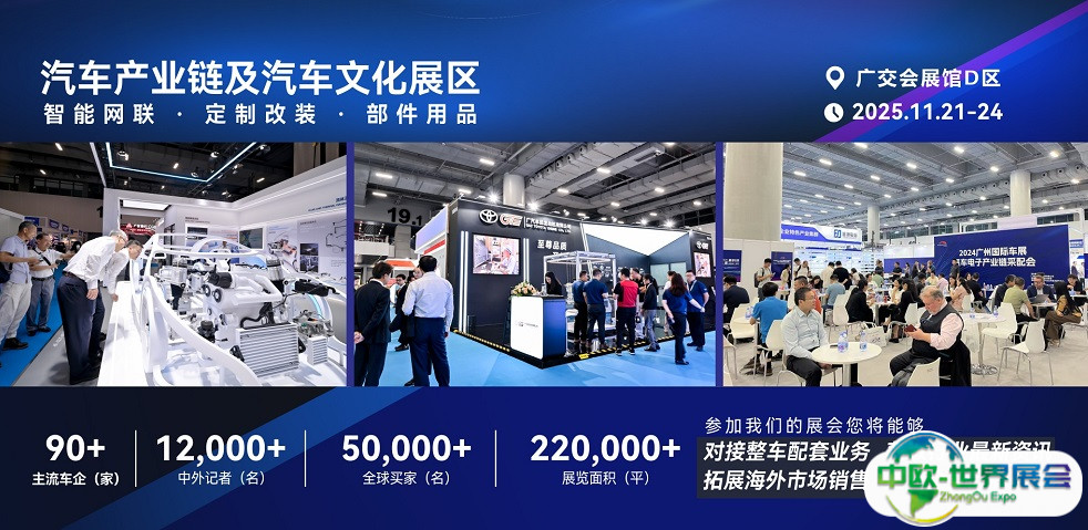 广州国际汽车展览会汽车产业链及汽车文化展区,是由原广州国际车展汽车零部件及用品展区升级而来。作为覆盖汽车全产业链的行业顶级盛会,广州国际车展在前端整车题材向电动化、智能化转型升级的同时,推动配套的汽车零部件及用品展区进行转型升级,形成以汽车科技为核心、满足汽车生活新要求、覆盖全新汽车产业链的“汽车产业链及汽车文化展区”,着力发展汽车产业新质生产力,助力汽车行业形成高质量发展新格局。