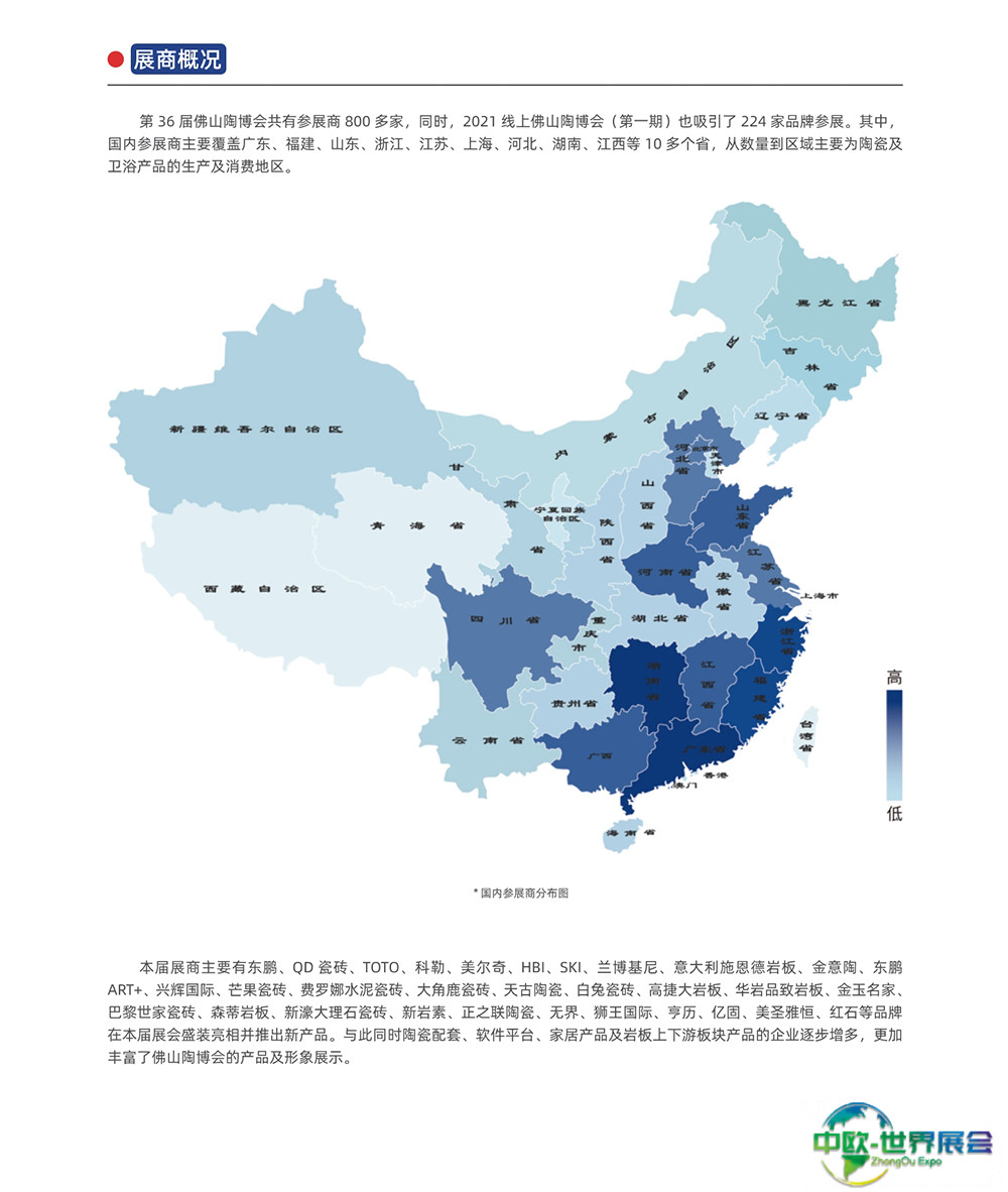 佛山国际陶瓷及卫浴展-佛山陶博会(CERAMBATH)被业界公认是继意大利博洛尼亚陶瓷卫浴博览会Cersaie、西班牙瓦伦西亚陶瓷卫浴展Cevisama、美国国际石材及瓷砖博览会Coverings之后的第四大国际陶瓷及卫浴博览交易会,是中国陶瓷及卫浴品牌企业最多、规模最大、聚集效应最强、最具权威性的专业展,是中国陶瓷、卫浴产品面向世界的窗口。